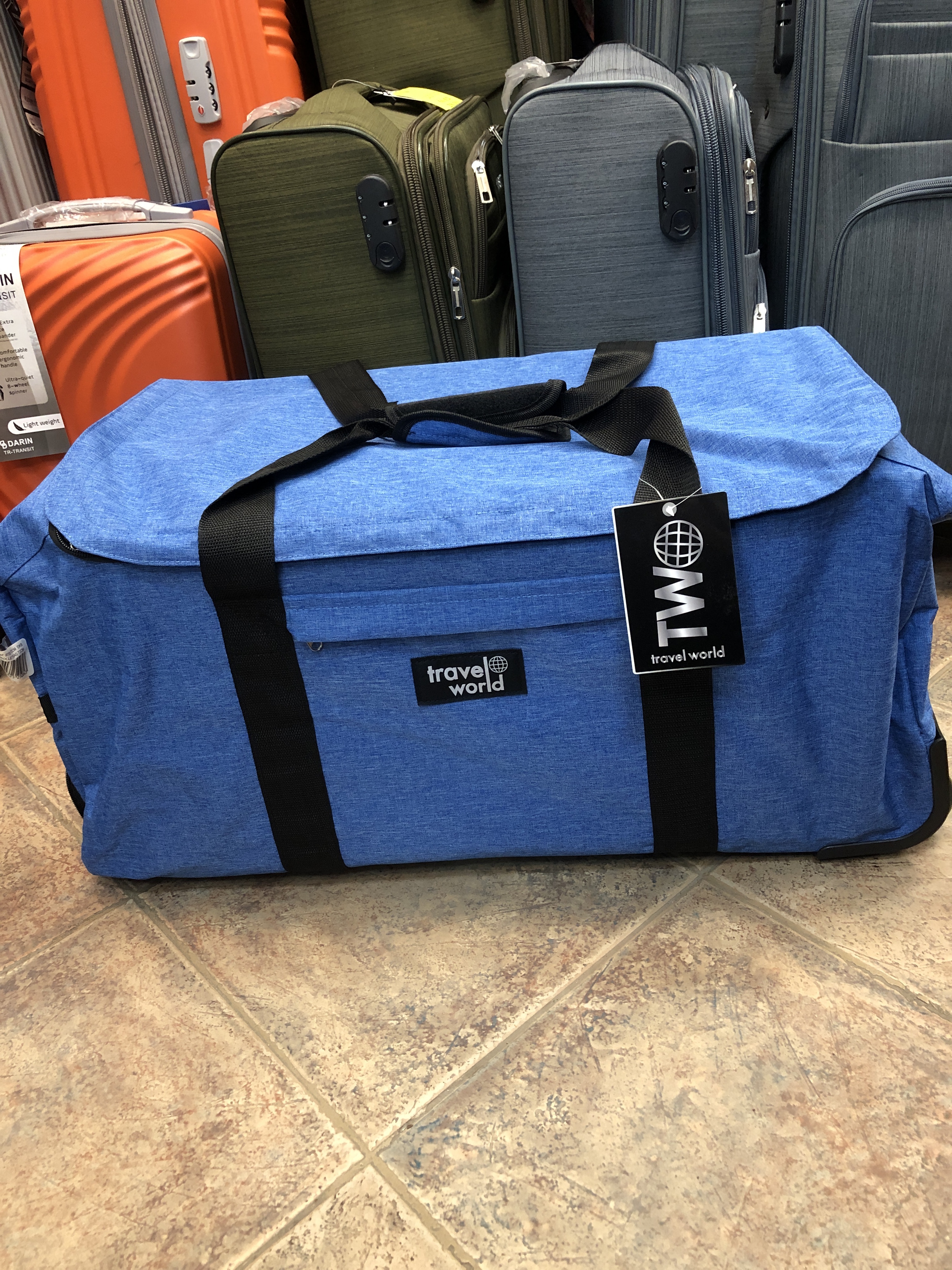 Пътен сак с колела Travel World, 74x33x35 см, телескопична дръжка, голям капацитет, син