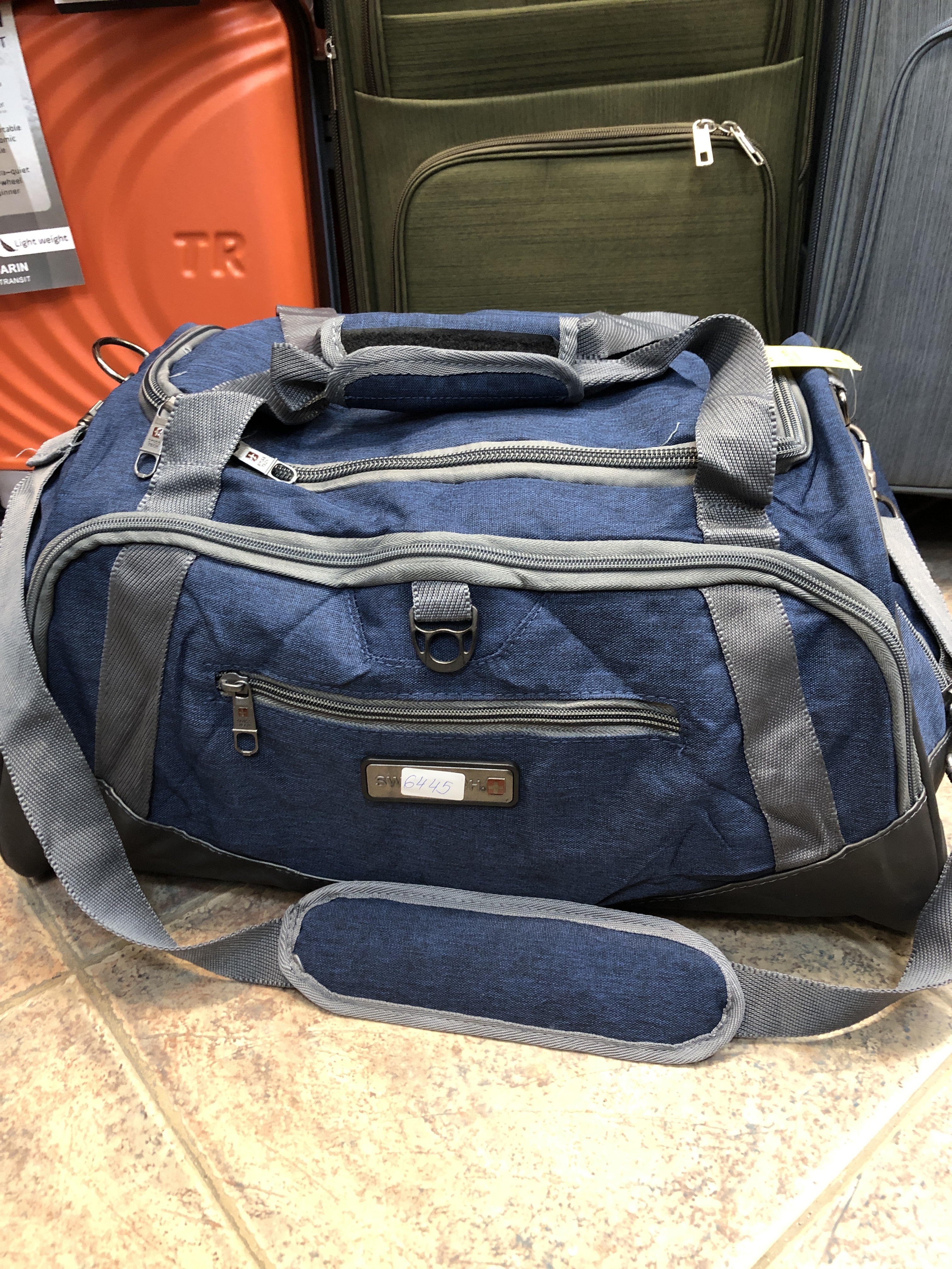 Пътна чанта Swiss Gear стил, с множество отделения и презрамка, тъмносиня